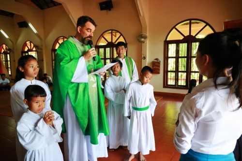 De Itália ao Camboja a viagem é longa, de milhares de quilómetros, mas só quando se aterra mesmo num lugar concreto é que se notam as diferenças. É outro mundo. “A primeira coisa que percebi, acima de tudo, foi sobre estar aqui fisicamente. Estar aqui, ‘personificado’, de corpo. Estou aqui com o meu corpo. O meu corpo levou bastante tempo até se adaptar…” Luca é alto e ainda jovem. A sua presença contrasta bem com a da maioria da população local. A aldeia cristã está situada numa região onde existe uma forte presença muçulmana. Mas no Camboja a religião oficial é o Budismo. Para o Pe. Luca, essa é uma feliz coincidência. “De forma simplista – diz – temos a comunidade muçulmana por um lado e a comunidade budista por outro, enquanto nós, Cristãos, estamos no meio.”