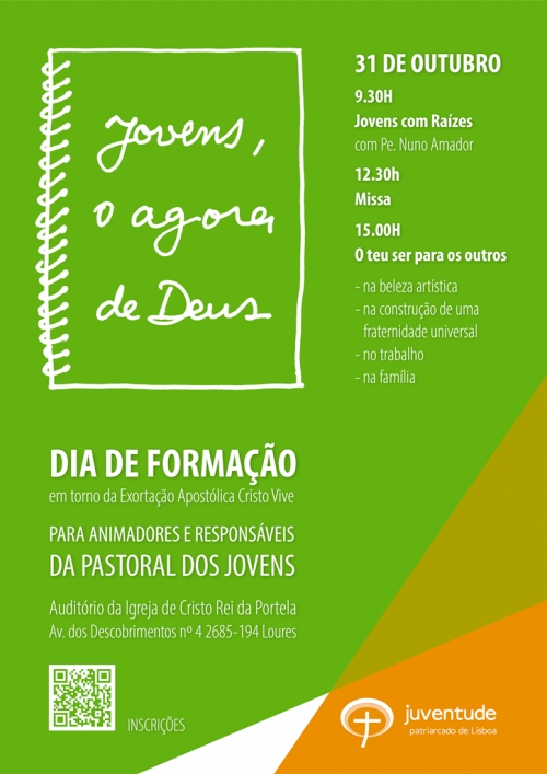 Neste dia 31 de Outubro, no Auditório da Igreja de Cristo Rei da Portela, terás a formação ‘Jovens, o agora de Deus’.