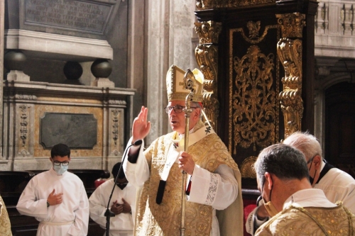 “Os sentimentos de Cristo hão de repassar os nossos e as suas causas também. E igualmente os outros, se autênticos formos, de palavras e obras inteiramente evangélicas. Não há outro plano para tão grande construção”, salientou o Cardeal-Patriarca, na celebração na Sé de Lisboa, no passado dia 25 de outubro, elencando depois como a Igreja quer “estar”. “Salvaguardar e apoiar a vida humana da conceção à morte natural, privilegiar a atenção a todas as periferias sociais e existenciais, respeitar cada um e a criação inteira, ter bem presentes e ativas todas as urgências para que o Papa Francisco insistentemente nos reclama: Assim mesmo estamos e queremos estar, como o próprio Cristo naquele dia em Jerusalém, purificando o templo do nosso próprio coração, para que nele apenas subsista o autêntico louvor divino e o serviço dos irmãos”, referiu. Neste sentido, para D. Manuel Clemente, na Sé Patriarcal deve ser pregado o louvor a Deus e o serviço aos outros. “Louvar a Deus, servindo os outros: Isso mesmo terá pregado neste local”, apontou. “É este o modo único de nos dedicarmos como templo de Deus no mundo. Assim mesmo nos reerguemos com Cristo e nos alargamos com todos”, concluiu.