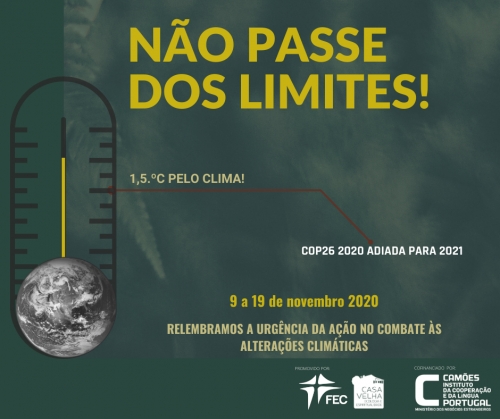De 9 a 19 de novembro a FEC- Fundação Fé e Cooperação e a Associação Casa Velha assinalam a Cimeira adiada e a urgência da ação no combate às alterações climáticas, na defesa das Pessoas e do Planeta. Não nos distanciámos da nossa meta, nem cessámos a nossa ação. O adiamento da Cimeira não adiou a necessidade de refletir e agir no combate às alterações climáticas. Fazemos, por isso, um convite à reflexão crítica e à ação informada que concretiza a história de conversão pessoal que cada pessoa pode protagonizar, numa simbiose entre o amor civil e político.