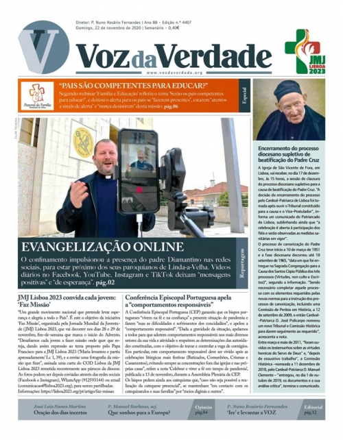 O título deste texto, num primeiro olhar, pode induzir em erro. Falar em levantar a voz pode significar afirmar-se, gritar, impor-se, demonstrar autoridade, e muitos outros significados que lhe queiramos atribuir com uma tonalidade de exaltação. Mas, neste texto, levantar a VOZ é trazer novo vigor, novo impulso, nova vida a um jornal que é de todos nós, da nossa Igreja local, da nossa Diocese de Lisboa. É o jornal que os nossos avós e bisavós liam e guardavam nos seus arquivos pessoais, vendido à porta da igreja ou recebido em casa, e que traz, consigo, uma história. Levantar a VOZ é fazer com que a imprensa escrita não morra; que o papel não desapareça; que a VOZ do povo de Deus não se ofusque; que a Verdade que conhecemos de Jesus Cristo continue a chegar a todos pela concretização de uma ação missionária, da prática da caridade, da Palavra meditada, da reflexão consciente e segura, da informação cuidada sem falsas notícias. Levantar a VOZ é comprometer-nos com o renovar o pagamento da assinatura que recebemos; é fazer nova assinatura, pessoal ou de oferta a alguém; é ser benemérito e ajudar com o que posso; é contribuir para divulgação na minha paróquia ou no meu movimento; na minha comunidade ou na minha casa; é comprar publicidade para anunciar a minha empresa, o meu produto; levantar a VOZ é, também, ser Igreja que aposta em utilizar os meios de comunicação, mais tradicionais ou mais modernos, com recurso ao que a tecnologia oferece.