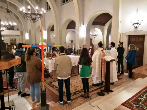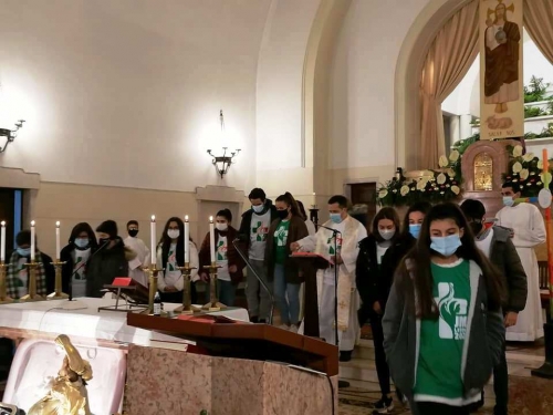 Foi na Eucaristia das 18h que os jovens deram testemunho do caminho que se propõem fazer rumo às Jornadas Mundiais de 2023, alicerçados nos símbolos que os acompanham: a Cruz do grupo de jovens, que é sinal da Cruz das Jornadas, entregue a Portugal e que se encontra na Sé Patriarcal; o Ícone de Nossa Senhora, Salvadora do Povo Romano, entregue pelo Papa S. João Paulo II, no ano 2000 aos jovens, para acompanhar, como Mãe, o Filho, na Cruz.