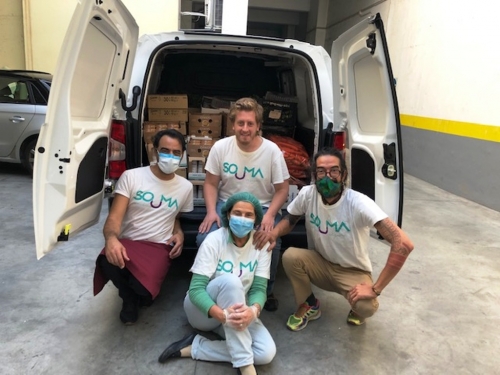 Tendo ficado sem um espaço, onde pudesse fazer o armazenamento e distribuição de alimentos, e onde pudesse continuar a confecionar alguns dos artigos dos ateliers que vivem e promovem a “Economia Circular” - e cuja venda serve a sua sustentabilidade, a SOUMA dispõe agora de cerca de 500m2 para o fazer. Este o “milagre”, nas palavras de Maria João Sousa, que vai poder servir, ao momento, 92 famílias, com cerca de 240 pessoas abrangidas, numa operação sustentada por mais de 300 voluntários – um verdadeiro “Exercito do bem”, de pessoas que vive e que deseja, com o que é e tem, ser de “abraço demorado” a quem não está na sua situação. Cerca de 160 voluntários confecionam as refeições em casa, a partir das suas próprias despensas ou de alimentos que lhes são fornecidos; outros levam-nas congeladas às famílias nos próprios veículos; outros ainda (cerca de 70) fazem acompanhamento por telefone, havendo quem o faça (emigrantes portugueses) a partir dos países onde vivem.