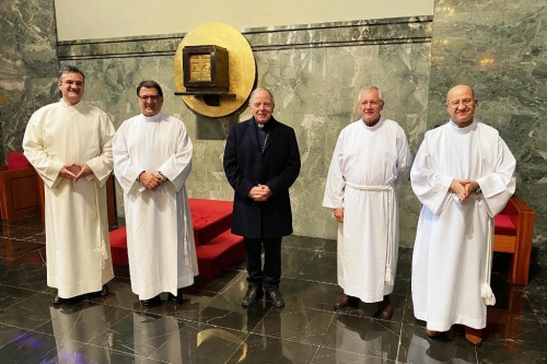 Foram quatro os candidatos ao diaconado permanente da diocese que foram instituídos acólitos, numa celebração presidida pelo Cardeal-Patriarca de Lisboa. Na capela do Seminário dos Olivais, no passado dia 13 de março, D. Manuel Clemente instituiu acólitos António Hipólito e Samuel Sanches, ambos da paróquia de Alcabideche, na Vigararia de Cascais, Diogo Clemente, da paróquia de Fanhões, na Vigararia de Loures-Odivelas, e Nuno Andrade, da paróquia da Lapa (Estrela), na Vigararia Lisboa III.