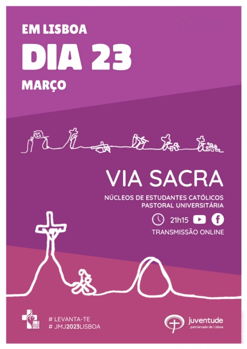 Está quase aí o próximo Dia 23, e continuamos a caminhar até Jerusalém. Desta vez, e inspirados por este tempo quaresmal, convidámos a Pastoral Universitária/ Núcleos de Estudantes Católicos para nos ajudarem a rezar melhor este tempo, e, para isso, a preparem um dos mais belos modos de se meditar sobre a Paixão de Jesus: uma Via Sacra.