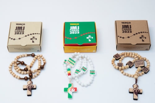 Os novos terços foram produzidos precisamente em Fátima. “Nos três modelos criados, o cordão do terço é em fio de algodão. Duas versões são em madeira, uma trabalhada e outra mais simples, e outra usa o plástico reciclado como matéria-prima. As peças assumem a preocupação ambiental, com algumas caraterísticas peculiares, como o facto de em cada terço de plástico ser usado material reciclado equivalente a 35 tampas de garrafa de água”, salienta o comunicado, sublinhando que “comunicar para todos, nomeadamente através da linguagem inclusiva (braile e pictogramas), é uma prioridade da JMJ Lisboa 2023 que está presente nas embalagens dos terços, em papel reciclado”. Os novos terços estão à venda desde o dia 15 de abril. “Tendo como ponto de partida a identidade gráfica da Jornada, o Terço integra como elementos centrais a Cruz da JMJ Lisboa 2023, e, no passador, o lema da JMJ 2023, definido pelo Papa Francisco: «Maria levantou-se e partiu apressadamente» (Lc 1, 39). Nas contas do Pai-Nosso está a referência «JMJ LISBOA 2023», impressa nos idiomas oficiais (português, espanhol, inglês, francês e italiano)”, refere o comunicado de imprensa.
