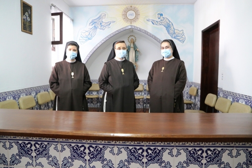 Já a irmã Marina, quando questionada sobre os desafios da vida de clausura, faz silêncio e baixa a cabeça. Depois, de sorriso no rosto, responde: “Toda a vida é um desafio, na medida em que nós procuramos ser fiéis àquilo a que nos comprometemos. Sabemos que o Senhor chamou-nos naquele momento, mas constantemente nos chama à fidelidade. Todas somos diferentes – mesmo sendo irmãs de sangue –, pelo que a vida comunitária é um grande desafio. Depois, temos o grande desafio da fidelidade à oração. Das coisas que mais me toca é de facto a adoração, aquele momento a sós com o Senhor, em que podemos tomar, nas nossas mãos, toda a humanidade e colocar diante d’Ele. Podemos ter a tentação de pensar que estamos aqui fechadas, e a nossa vida pode parecer inútil, mas através da nossa oração conseguimos chegar onde outras não conseguem. Toda a humanidade está à espera da nossa oração”.