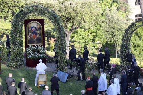 2. O Papa Francisco encerrou, na tarde de 31 de maio, a ‘Maratona do Rosário pelo fim da pandemia’, presidindo à oração do terço, nos jardins do Vaticano. “São tantos os nós que se apertam em torno às nossas vidas e restringem nossas atividades. São nós de egoísmo e de indiferença, nós económicos e sociais, nós de violência e de guerra”, disse o Papa, diante da Imagem. Rodeado de crianças e adolescentes de paróquias italianas, Francisco meditou sentado numa cadeira, de frente para o quadro que veio expressamente da Alemanha e reproduz fielmente a obra original de ‘Maria desatadora dos nós’, pintada pelo artista alemão Johann Schmidtner, no ano de 1700. O quadro original, com 1,1 m de largura por 1,82 m de altura, encontra-se na capela de St. Peter am Perlach, na cidade alemã de Augsburg. No final do terço e ladainha em honra da Virgem, o Papa colocou uma pequena coroa na tela do quadro, sobre a cabeça de Nossa Senhora desatadora dos nós, e permaneceu alguns minutos em oração silenciosa.
