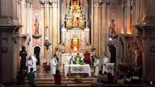 “Nesta celebração vamos dar graças a Deus por tanta coisa na nossa vida, na nossa história, e pedindo o enorme patrocínio de Santo António. Temos a certeza que Santo António, também no Céu, há de estar a velar por nós, a interceder por nós, para que realmente este caminho da JMJ seja um grande caminho de preparação, um caminho missionário, como ele foi um grande missionário. Que tudo corra para que, realmente, aconteça encontro com Cristo na vida de cada vez mais pessoas”, desejou, no início da celebração, o assistente do Serviço da Juventude do Patriarcado de Lisboa, padre João Quintas, que presidiu à Missa.