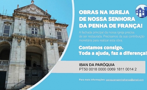 Após as obras na fachada norte do templo, a paróquia da Penha de França apelou agora à ajuda para restaurar a fachada principal da Igreja de Nossa Senhora da Penha de França. “A fachada principal da nossa igreja precisa de ser restaurada. Precisamos da sua contribuição monetária para realizar esta obra. Contamos consigo. Toda a ajuda, faz a diferença!”, frisa esta paróquia da cidade de Lisboa, convidado a donativos para o IBAN: PT50001800000069181100142. Há um ano, o Cardeal-Patriarca, D. Manuel Clemente, esteve nesta igreja e pediu a Nossa Senhora da Penha de França, protetora da cidade, para livrar o mundo da pandemia.