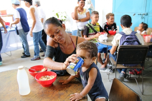 Na Diocese de Guaira há cada vez mais sem-abrigo, pessoas que se reduziram à condição de sobreviventes, que esgravatam os caixotes do lixo à procura de migalhas de comida. O bairro dos pobres chama-se ‘Esperança’ e é aí, na Paróquia de Nossa Senhora do Perpétuo Socorro, que vamos encontrar outras destas mulheres heróicas que conseguem transformar o muito pouco naquilo que dá alento à vida. A fé tem ajudado o trabalho de Socorro, Orfília e Milange. Um pouco mais ao lado, na Paróquia de San Sebastián, Amélia, Nelida e Bárbara, três irmãs Missionárias Eucarísticas de Nazaré têm conseguido o prodígio de manter acesa (talvez cheia seja melhor, não?) a panela da “sopa dos pobres”. Além de comida quente, também distribuem roupa e muitas vezes são acompanhadas por médicos que, voluntariamente, dão assistência e prestam apoio a estas populações sem recursos. As filas para a sopa crescem de dia para dia, sinal de que a fome é cada vez maior na Venezuela.