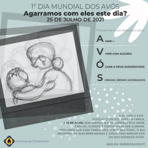 Um grupo de famílias do Movimento Apostólico de Schoenstatt na Diocese de Lisboa lançou a corrente ‘Queridos Avós’, para “entusiasmar cada família de Lisboa, e oxalá de Portugal, a agarrar este dia com os seus Avós, sejam de sangue, sejam de coração”. “O desafio é festejar o dia dos avós em família, a 25 de julho, num ABRAÇO que se expressa pelo amor, carinho, cuidado e por palavras que iluminam. Propomos que cada família organize o seu picnic, o seu encontro, as suas brincadeiras e jogos para marcar este dia dos QUERIDOS AVÓS!”, indica um comunicado, reforçando: “Famílias, vamos agarrar este dia! Que nenhuma família deixe de festejar os seus avós e de lhes mostrar como precisam deles!”.
